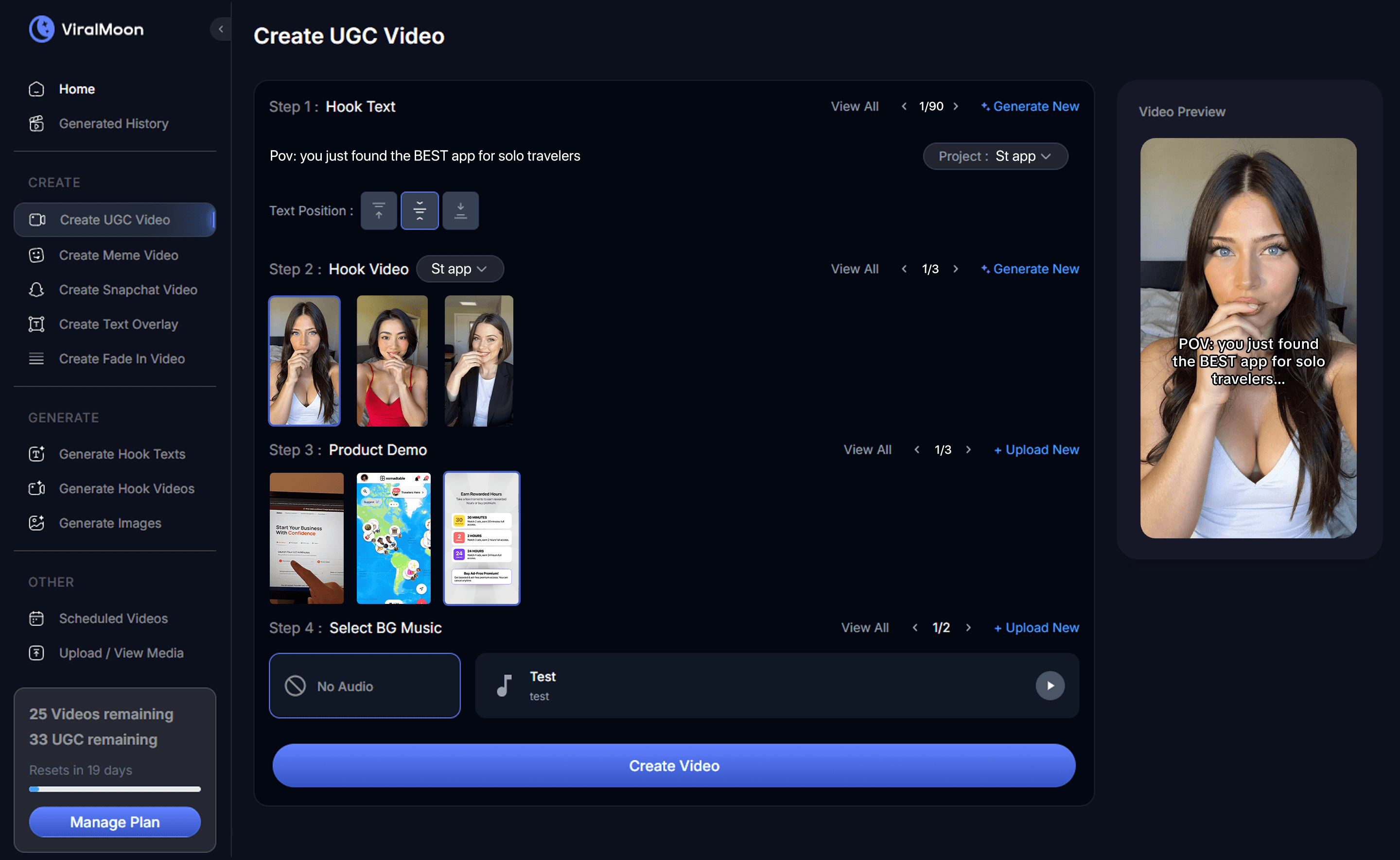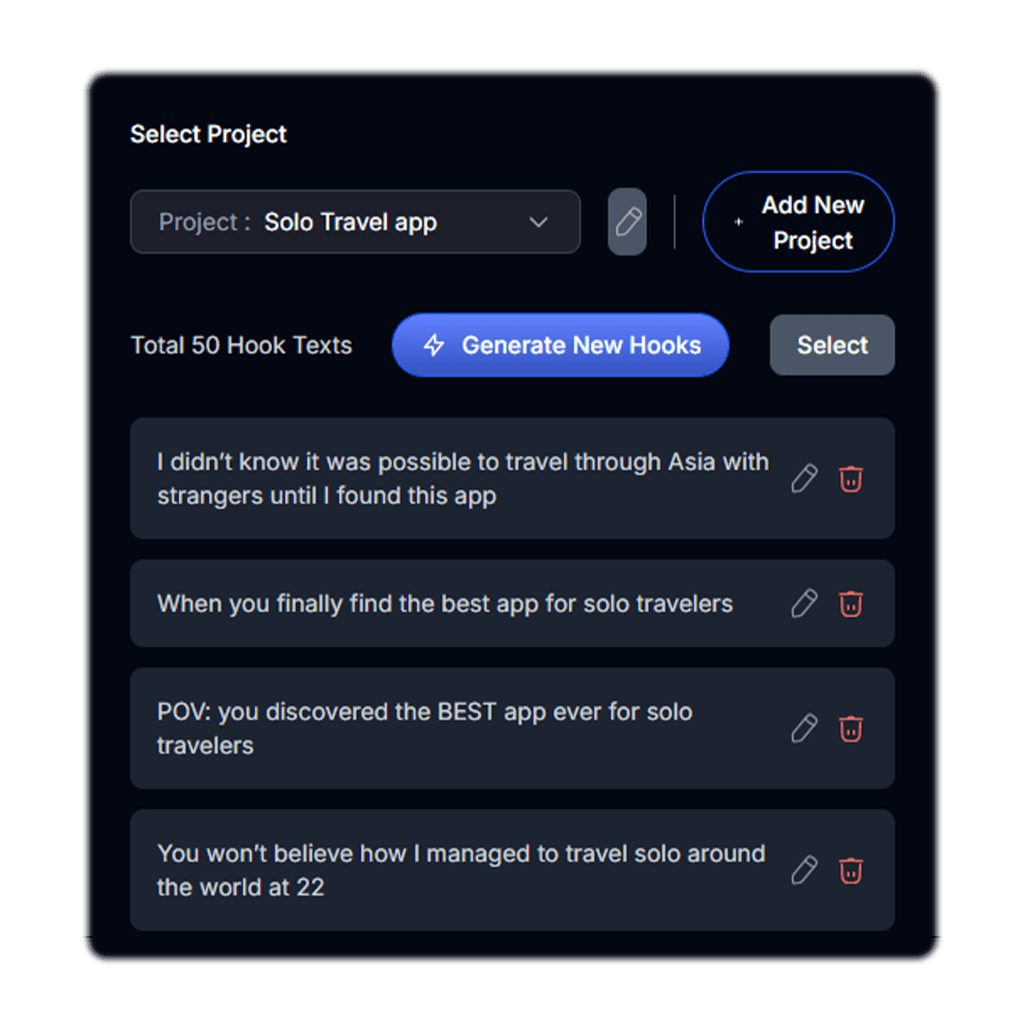 Create high-performing videos fast with powerful hooks and attention-grabbing UGCs